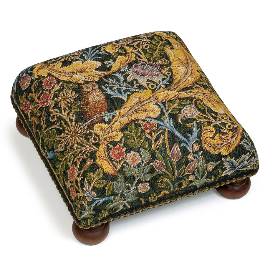 Handwoven cotton blend tapestry from England. Bunn feet and traditional style studding. Exclusively at Scully & Scully.