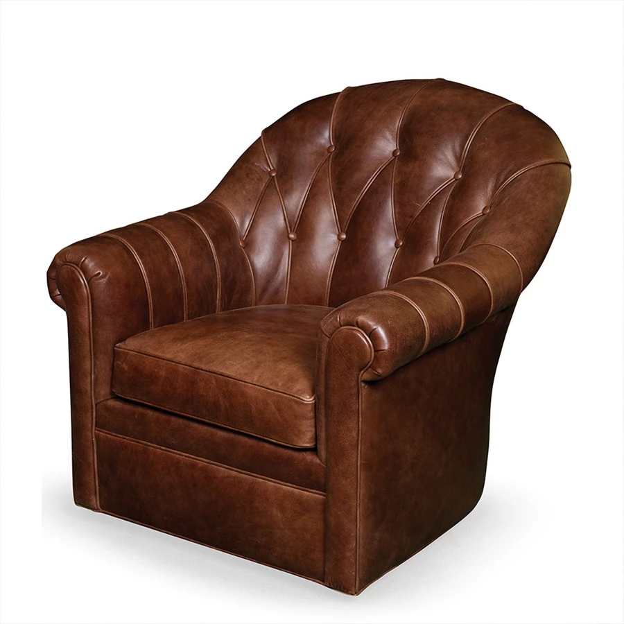 Guaranteed to retain their shape while remaining soft and comfortable. Lushly crafted and entirely handmade by master craftsmen in America. Top grain leather and special cushioning carefully selected to retain their shape while remaining soft and comfortable. Swivels 360 degrees.
