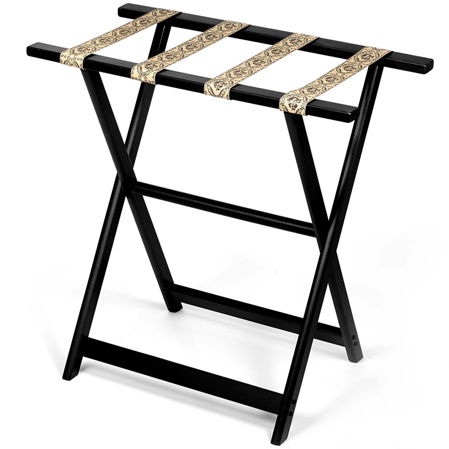 Great for guests, packing and unpacking or holding a tray. Hardwood racks have four straps. Made in America.