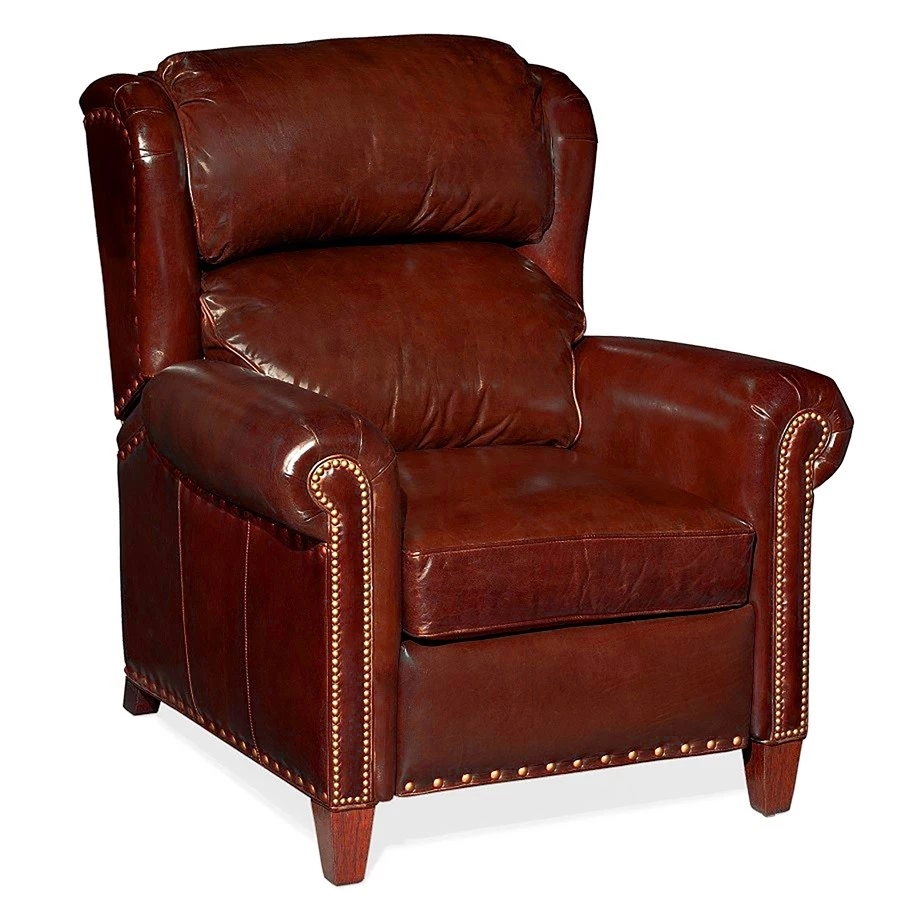 Lushly crafted and entirely handmade by master craftsmen in America. Top grain leather and special cushioning carefully selected to retain their shape while remaining soft and comfortable. The wood is maple, hand-carved and hand-sanded. Shown in olive green and can be ordered in three other colors.