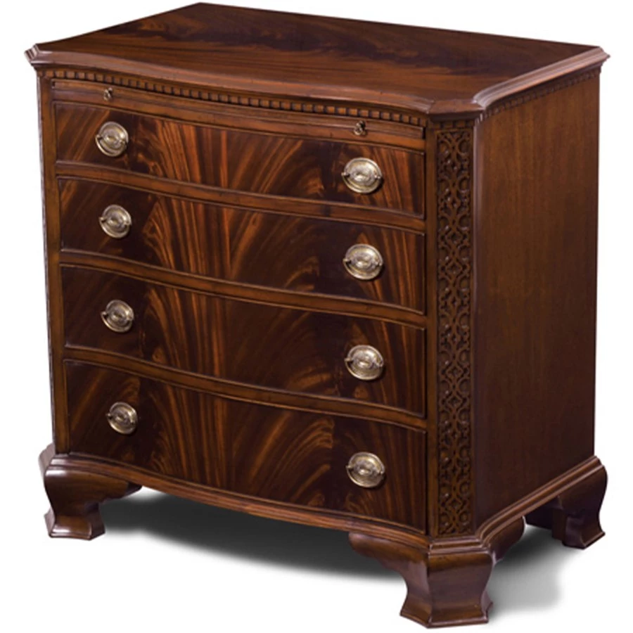 Crafted out of fine crotch Mahogany, this chest offers subtle notes of fine craftsmanship that would be a welcomed edition to any room. Offering handmade brass fittings made specifically for the chest.