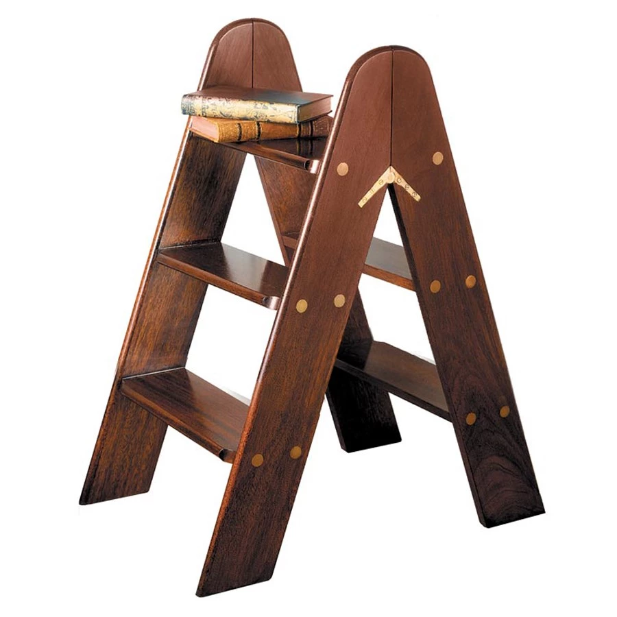 An authentic reproduction of the 18th-century steps used in the library of a grand manor house, this faithful replica can also be used to display prized plants or collectibles. Handcrafted in England of solid mahogany with solid brass pegs and hinges. Folds for easy storage. Exclusively at Scully & Scully.