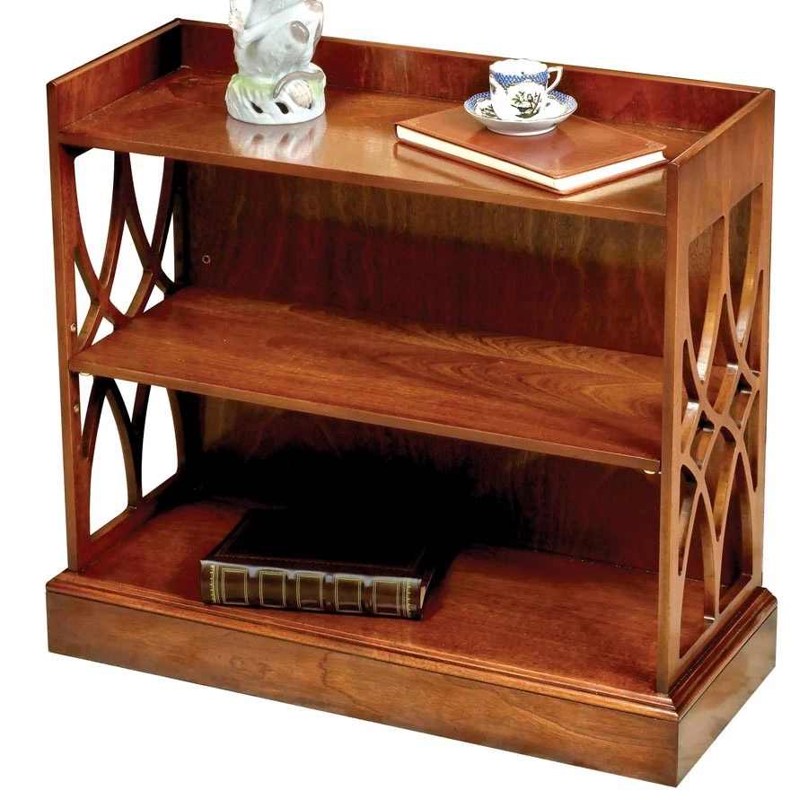 Elegantly handcrafted reproduction of an 18th century piece. Mahogany with mahogany veneers and fretwork ends. Fully finished on back, so it can stand alone, against a wall or at the end of a sofa. Handmade in England. Exclusively at Scully & Scully.