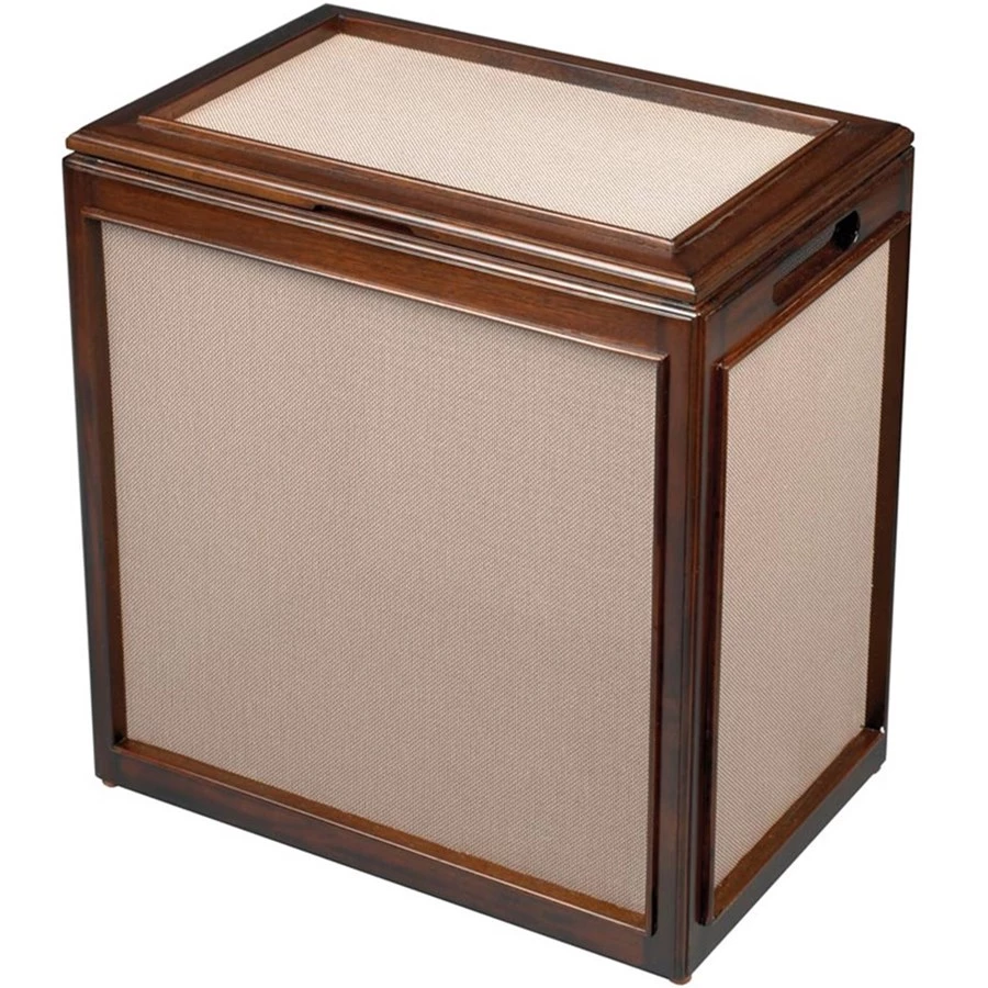 Ferrari hemp set into eco-friendly plantation-grown mahogany. Hamper has handle openings and chain inside lid to control how far it opens. Exclusively at Scully & Scully.