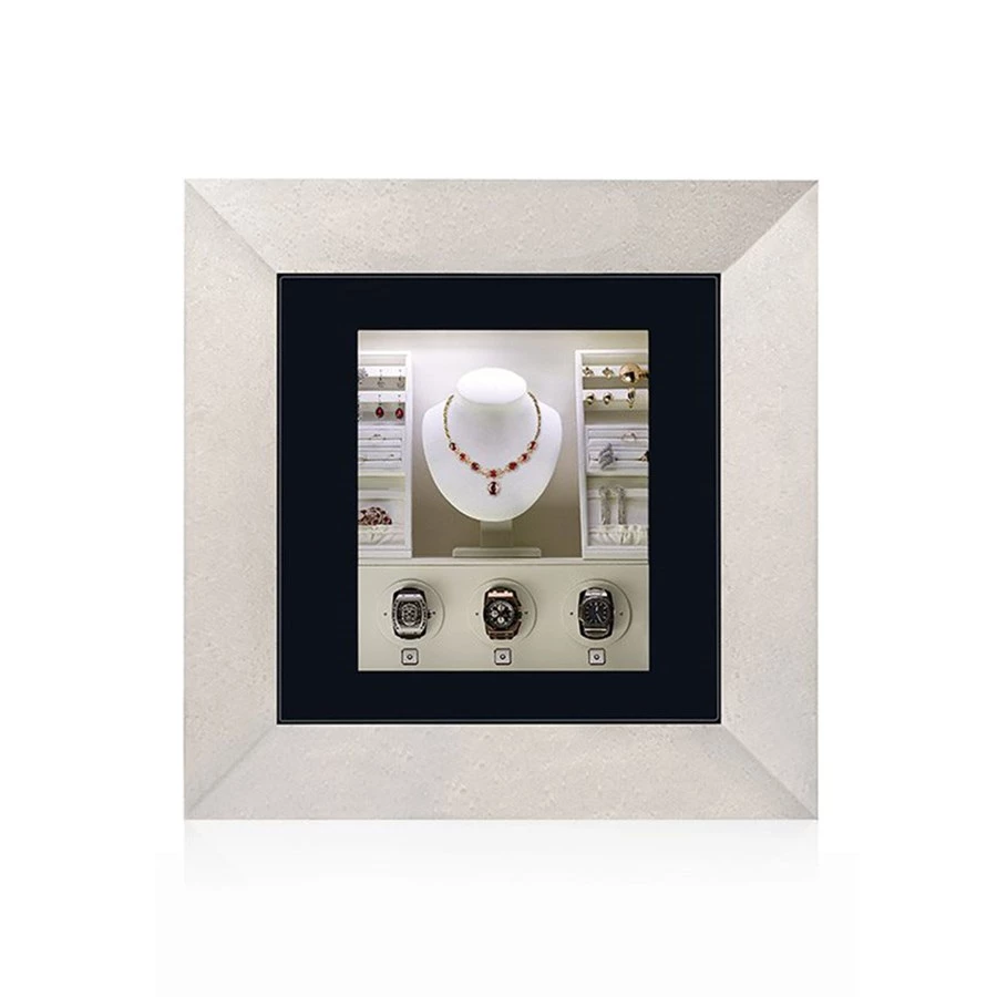 Safe with spyglass and watch winders. This safe can be organized to display all types of collections and valuables. The mirror reflects when off and a mobile phone app can turn on the internal led lights and open the door. Handmade in Italy with Swiss-made winders.